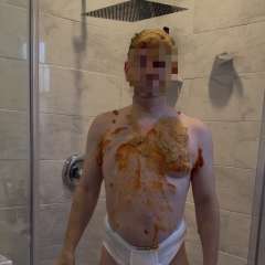 Ramiro joined WetandMessyEllie in a big tub filled with warm carmel